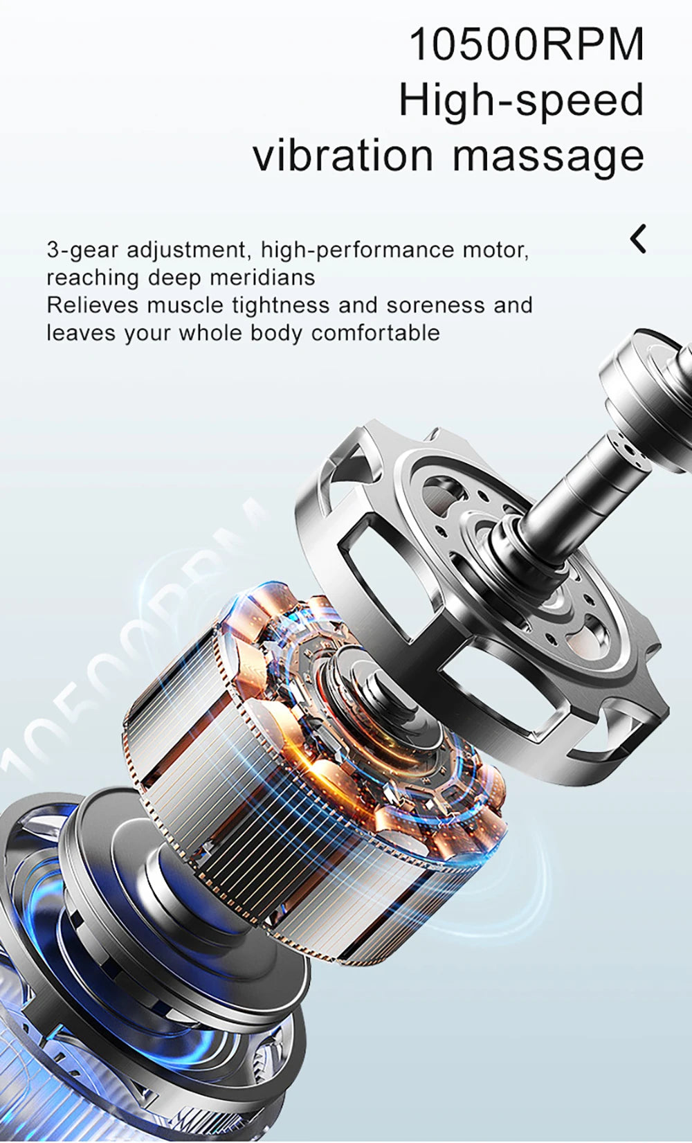Offers heat (38–46 °C), vibration (up to 10,500 RPM), and NMES (neuromuscular electrical stimulation) for targeted fascial release, muscle relaxation, and body lifting effects. -